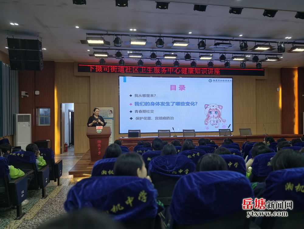 岳塘融媒4月17日讯(通讯员:杨洋)为进一步加强青少年健康科普教育,提升青春期学生HPV防治认知水平,筑牢校园健康防护屏障,4月17日,下摄司街道社区卫生服务中心联合岳塘区疾控中心、湘潭市妇幼保健院专家走进湘机中学,开展家庭医生签约服务五进活动——进学校之“守护青春健康,共筑HPV防线”HPV防治知识健康科普讲座,为广大中学生带来专业、实用的健康知识课堂。